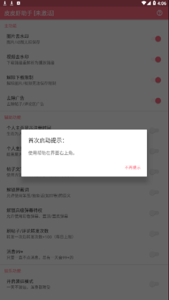 1. 去除广告:皮皮虾助手能够去除皮皮虾软件中的各类广告,包括启动页广告、帖子广告、评论广告、小程序广告及即玩小游戏广告,让用户享受更纯净的浏览体验。