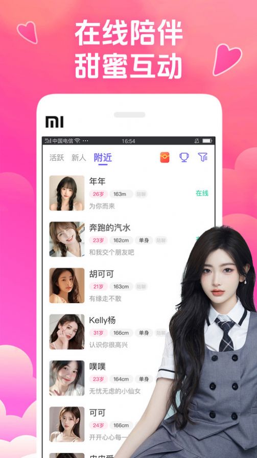 1. 附近交友功能:优先匹配附近异性,拉近彼此距离。