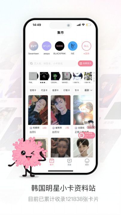 1. 全面的明星小卡资源:珊瑚集市收录了海量的韩国明星小卡,几乎覆盖了所有热门的kpop艺人,为用户提供了丰富的选择。