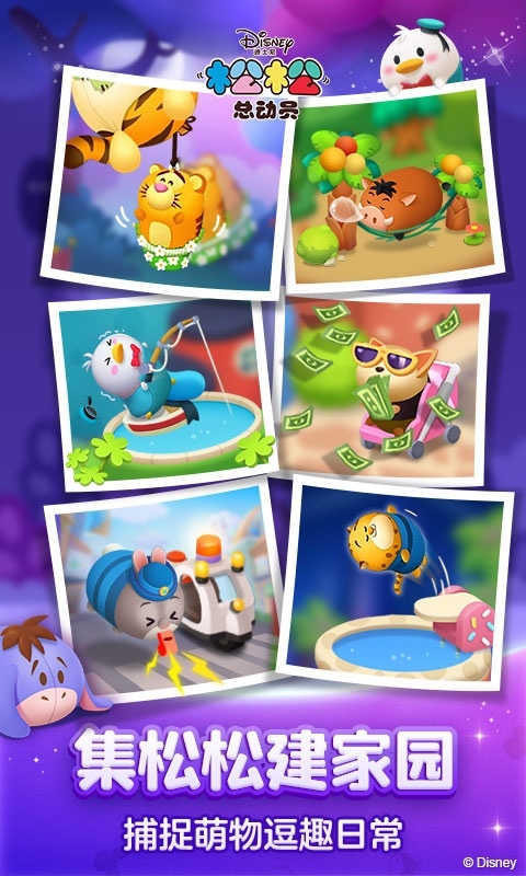 松松总动员最新版是一款由迪士尼正版授权的治愈系收集类手游,为玩家带来了一个充满魔法与奇幻的迪士尼世界。游戏内汇集了唐老鸭、米奇米妮、小熊维尼等众多经典迪士尼角色,让玩家在享受消除乐趣的同时,与这些可爱的角色共同成长,打造专属的梦幻乐园。通过丰富的关卡挑战、多样化的互动玩法以及精美的画面设计,松松总动员为玩家提供了一个既休闲又充满挑战的游戏体验。