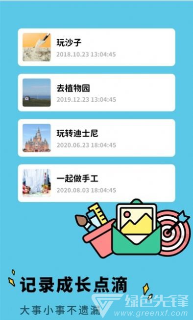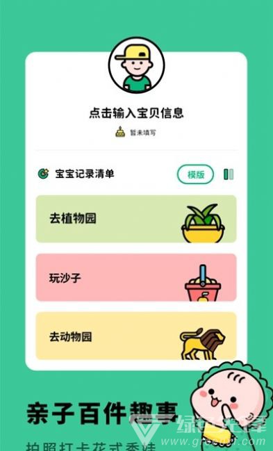 3. 100件成长记:综合宝宝的年龄段和兴趣爱好,展示100件富含趣味的事件,记录宝宝成长过程中意义十足的节点。