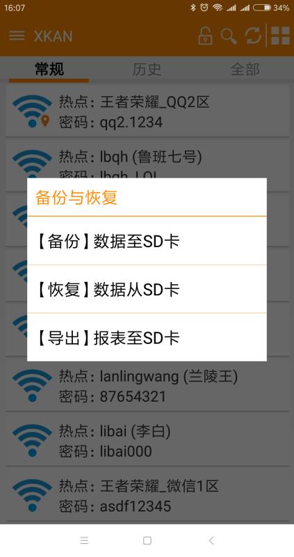 3. 备份与恢复:支持将手机上的wifi信息备份至sd卡,即使在恢复出厂设置、刷机或换机后,也能轻松恢复旧的wifi信息。