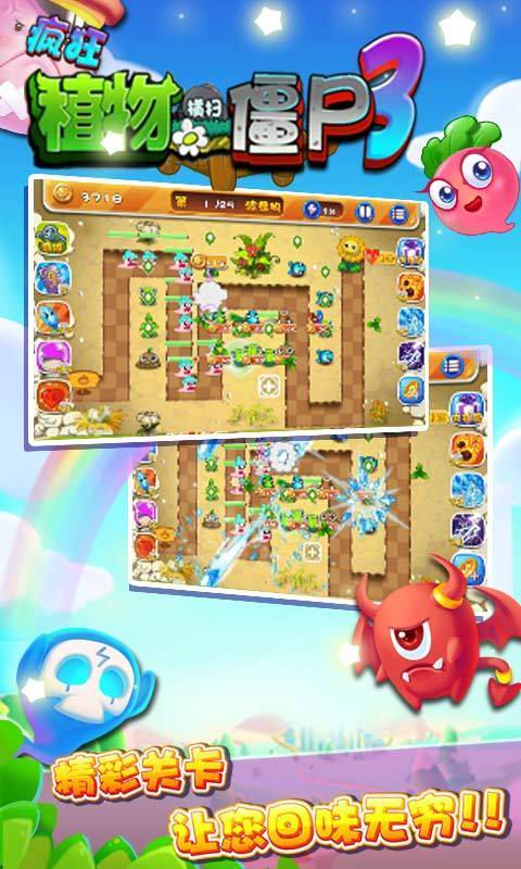 疯狂植物横扫僵尸3是一款充满惊险与策略性的塔防类手机游戏,它以独特的萌娘化植物与僵尸的对抗为主题,为玩家带来前所未有的游戏体验。游戏中,玩家将扮演英勇的植物守护者,利用各类拥有特殊能力的植物少女,布置防线,抵御一波又一波僵尸的侵袭。精美的游戏画面、紧张刺激的背景音乐,以及丰富多样的关卡设计,让这款游戏成为休闲与挑战并存的佳作。