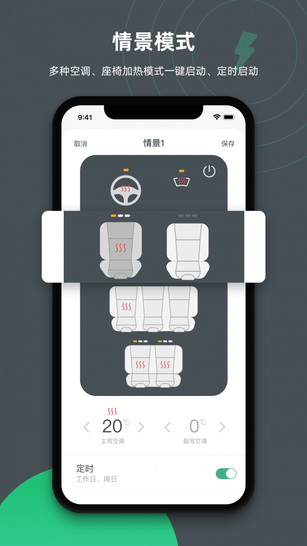 1. 情景模式功能丰富,一键激活即可享受舒适的驾驶环境,满足车主的个性化需求。