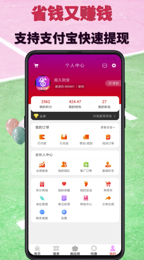 2. 赚钱:软件还提供自购赚钱、分享赚钱、推荐赚钱等多种赚钱方式,让用户购物同时还能赚钱。