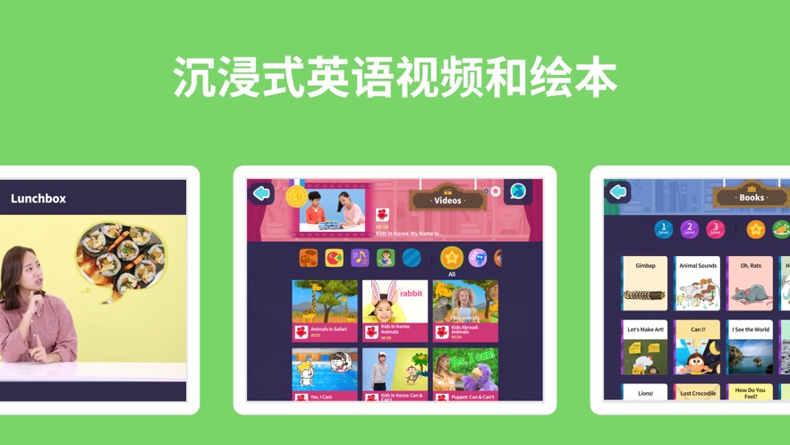 1. 丰富的资源:包含超过300个英语视频和200多本英语绘本,以及多种互动游戏和练习,满足孩子不同的学习需求。