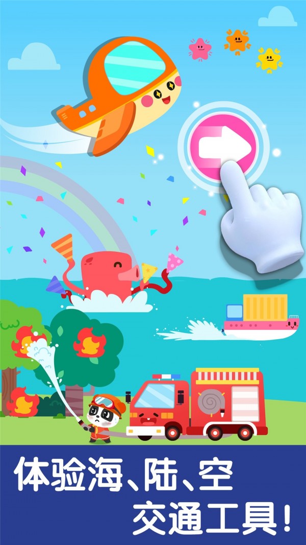 1. 互动性强:宝宝可以通过点击、滑动等触摸式操作与交通工具进行互动,如驾驶飞机、操控消防车等,体验感十足。