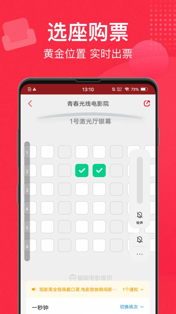 1. 快速购票:打开猫眼电影app,选择想看的电影和影院,选择合适的场次和座位,完成支付后即可获得取票码。
