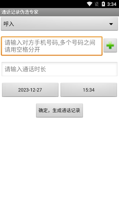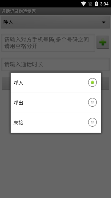 3. 选择类型:根据需要选择伪造的通话记录类型,如呼入、呼出或未接来电。