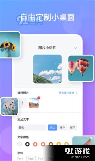 壁纸与小组件结合:不仅提供丰富的壁纸资源,还提供多种实用的小组件,满足用户对桌面美化的全方位需求。1.