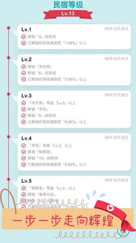 1. 初始建设:玩家在游戏开始时需选择一个地段建立民宿,并逐步进行设施建设和升级。