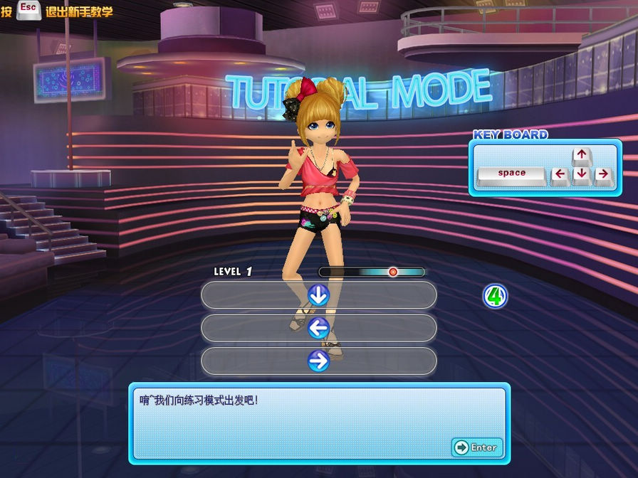 2. 学习如何跟随音乐节拍敲击键盘上的箭头,完成舞蹈动作。