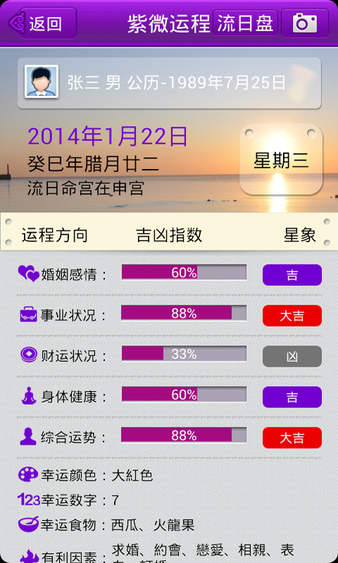2. 个性化解读:根据用户输入的个人信息,软件能够生成专属的运势报告,包括事业、感情、健康、财运等多方面的详细分析。