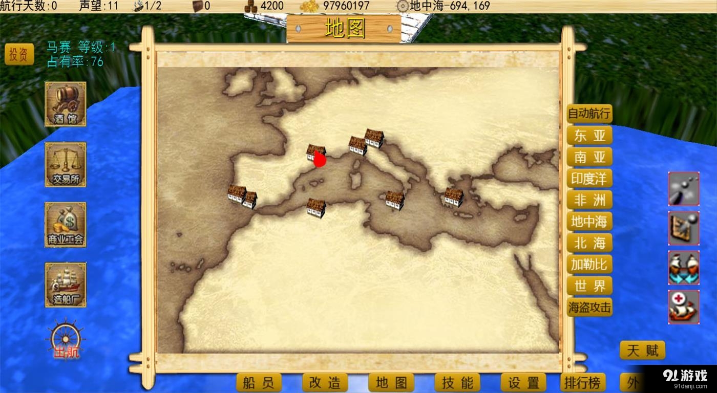 2. 高度自由的玩法:玩家可以根据自己的喜好和策略,自由选择航线、投资方向、战斗策略等,打造独一无二的海上帝国。