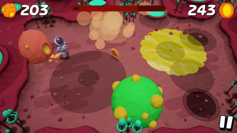 《危险闪避》是一款休闲游戏。陨石来袭,玩家需要操纵萌萌哒的角色躲避危险保住小命。陨石落点会有阴影出现,玩家提前做出反应即可躲避成功。左上角有显示已砸下的陨石数目,随游戏进行,陨石下落频率逐渐增大。游戏内置多种角色可供解锁,如宇航员等。