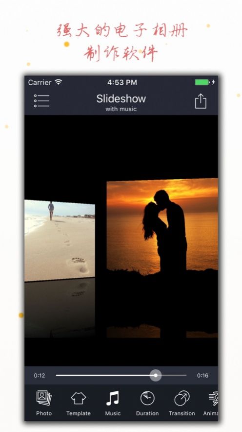 3. 添加照片与编辑:在编辑页面添加照片,调整照片顺序和位置,还可以添加文字描述和背景音乐。