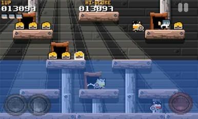 在游戏中,玩家通过虚拟按键控制角色的左右移动和跳跃,灵活躲避警察的追捕,同时收集场景中的钱袋。每个关卡都设计有独特的障碍物和布局,增加了游戏的挑战性和趣味性。2.