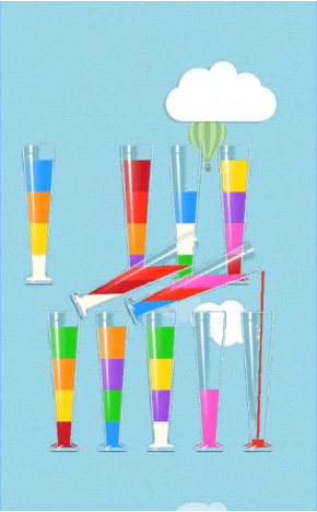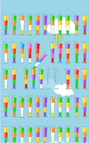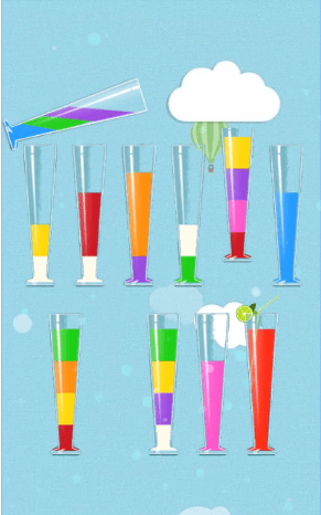 2. 颜色匹配:目标是将所有杯子中的果汁颜色统一,达到关卡要求。