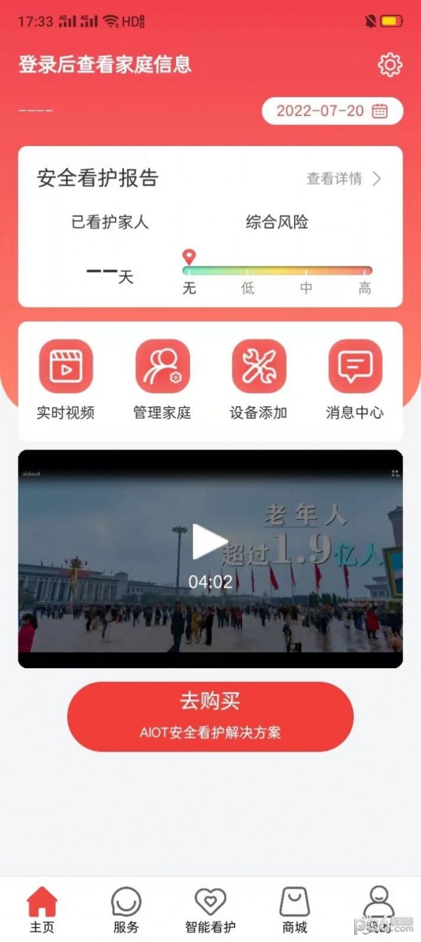 护老卫士是一款专为有留守老人或独居老人的家庭设计的智能看护综合服务平台app。该软件由湖南童老科技有限公司自主研发,利用物联网、远程智能安防监控技术+人工智能等aiot系统,实现了24小时安全自动值守,确保老年人的生命安全。通过可穿戴/易安装设备(如智能摄像头、智能手环、毫米波雷达等),护老卫士能够全面监测老人的生活状况,提供及时的健康和安全预警。