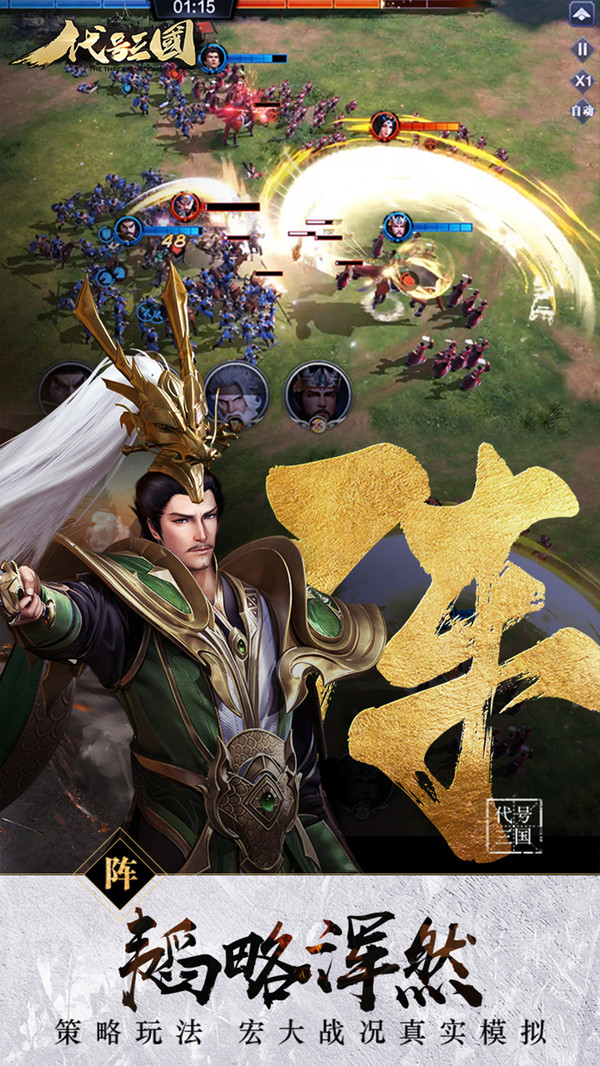 2. 大规模兵团即时作战:游戏采用大规模兵团即时作战方式,玩家需在开局前进行排兵布阵,并在战斗中适时使用武将技能,以左右战场局势。