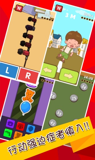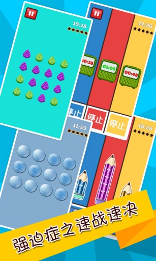 有没有强迫症?踢馆进来验证看看!幻想强迫症、行动强迫症在面对史上最疯狂、最难强迫症游戏时,冲动总是会压制不住!没有对齐的井盖、颜色不一的糖果、没有归好类的玩具、总是洗不干净的双手、门有没有锁紧、袜子没穿一样、气泡膜没全部捏爆…… 啊!!!很抓狂,很强迫!有木有,有木有!!!无论强迫症初期还是重症患者,是病,得治,千万别弃治啊亲!三个疗程,18个关卡,治愈你的强迫症,绝对史上最难!
