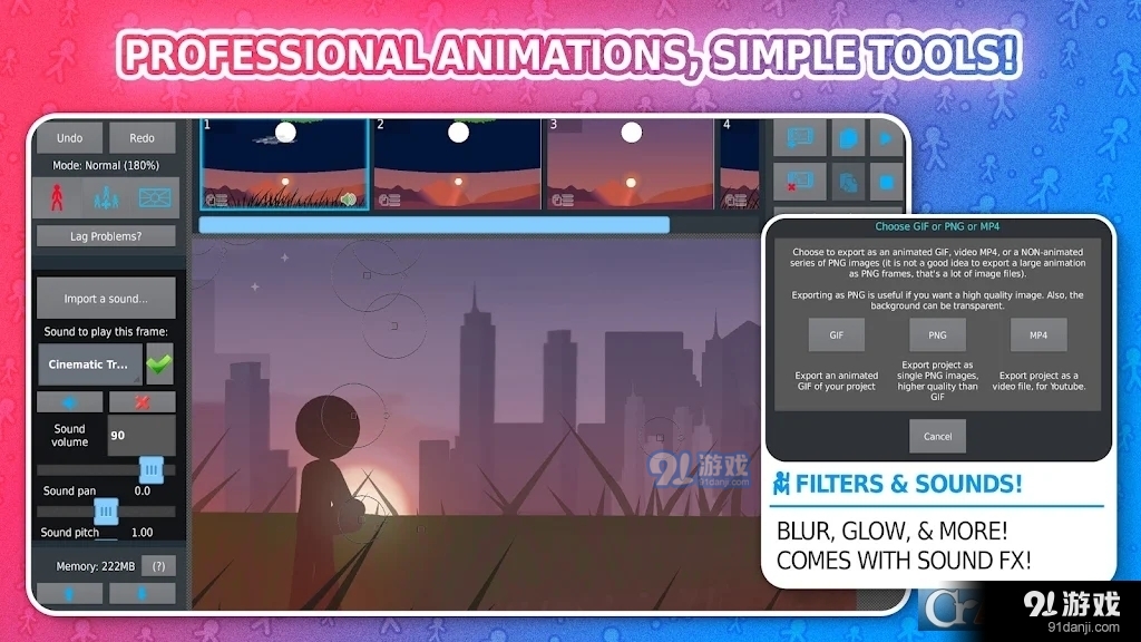 3. 专业音效支持:stick nodes支持添加各种音效和背景音乐,为动画作品增添更多听觉元素,提升整体观赏体验。