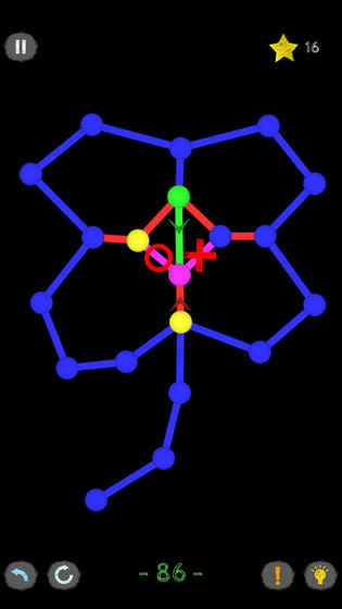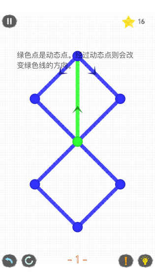 想必大家在学生时代都接触过一笔画。游戏规则非常简单。笔一次不脱手根据图形画出所有的图即可。但是经过一次的线不可以重复经过。当通过一个个关卡,越往后游戏难度将会越大。游戏中会给出一些特别的规定,比如需要经过两次的线,只能从一个方向经过的线,还有一下子移动到另一个点的跳跃点等规则。