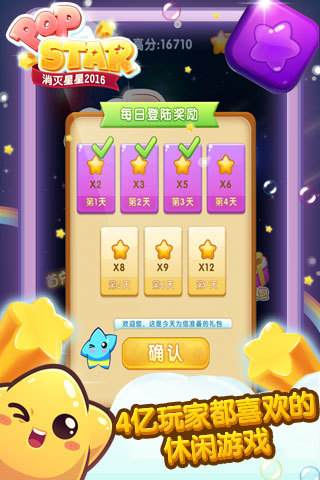 《消灭星星2016》是一款全球玩家都爱玩的经典消除游戏。在游戏舒缓的节奏中,只需用手指轻轻点击两个以上相同颜色的星星,即可顺利消除。消灭星星2016的画风清新可爱,用精致的画面带给你好的视觉享受。消灭星星2016给玩家带来更好的体验。喜欢萌系卡通风格的你一定不能错过!