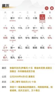 1. 月历视图:用户可以在此视图中轻松切换农历和藏历,查看特殊日子的标记和提醒。