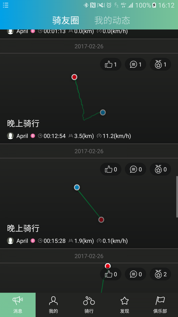 2. 社交互动:用户可以在软件内加入骑友圈,与附近的骑友交流互动,分享骑行心得和路线。
