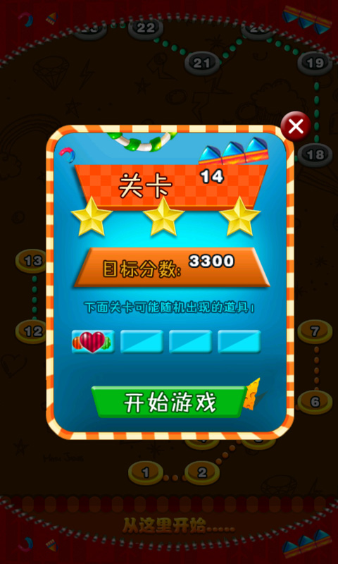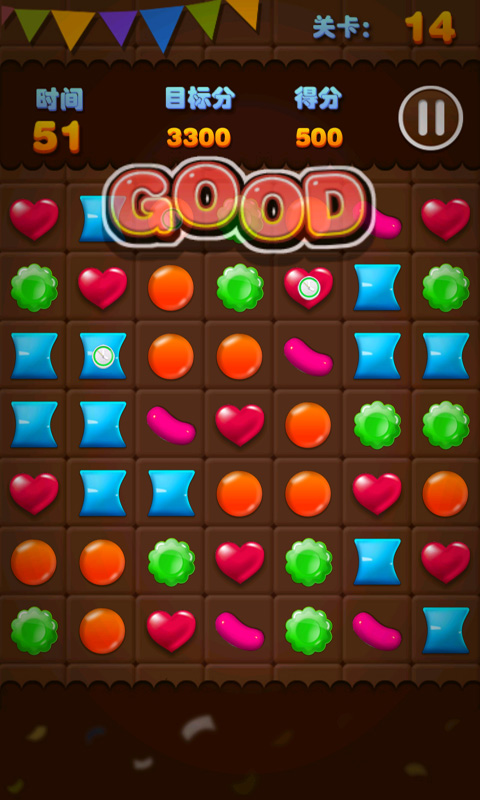 3、糖果连线同黄金矿工、可爱泡泡龙等游戏一样设有分数限制;