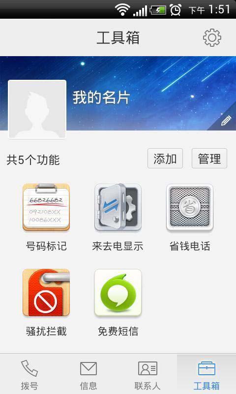 2. 个性化的来去电显示,包括通讯记录、收件箱归属地标示,实用的归属地、常用号码查询。