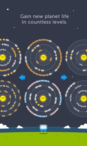 游戏的操作非常简单,通过点击就可以逐步从一环跳到下一环,最终来到太阳。但是圆环上的障碍重重,也正是因为它们的存在阻挡着你的前进。你要躲避尖刺,还要跳过墙壁,而从天文学角度出发,圆环的转速也会来捣乱。