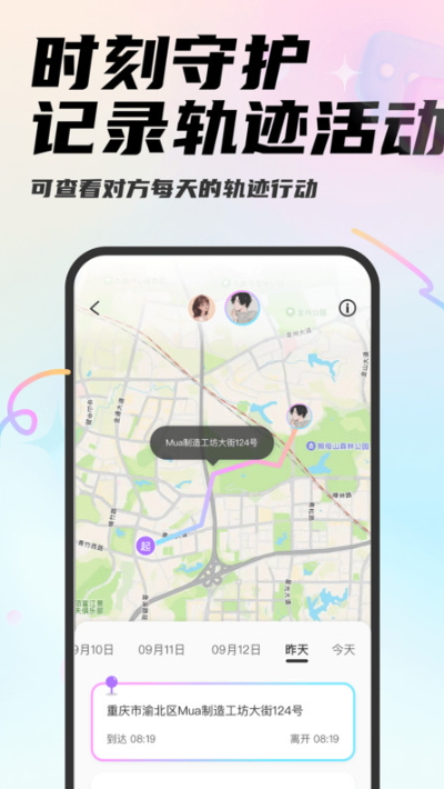 安全可靠:软件注重用户隐私保护,确保信息安全,让用户使用更加放心。mua情侣定位不仅是一款实用的定位软件,更是一个充满爱意的互动平台。它让情侣们在享受科技便利的同时,也能更加珍惜彼此间的情感联系。无论是实时位置共享还是甜蜜互动功能,都让人感受到爱情的甜蜜与温暖。如果你也是情侣党,不妨试试这款mua情侣定位软件,相信它会为你们的爱情生活增添更多乐趣和惊喜。