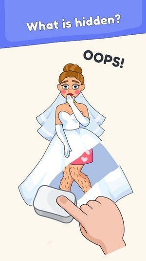 2. 玩家需要通过触摸和拖动屏幕上的橡皮擦工具来擦除图片的一部分,揭示背后的内容。