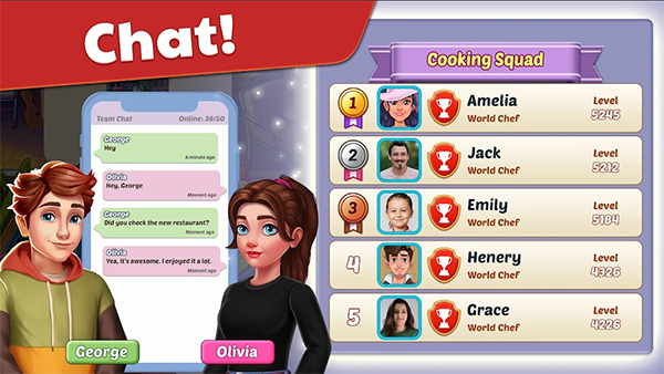 4. 社交互动:玩家可以在游戏中与其他玩家互动,分享烹饪心得、餐厅装修成果等,增强游戏的社交性。