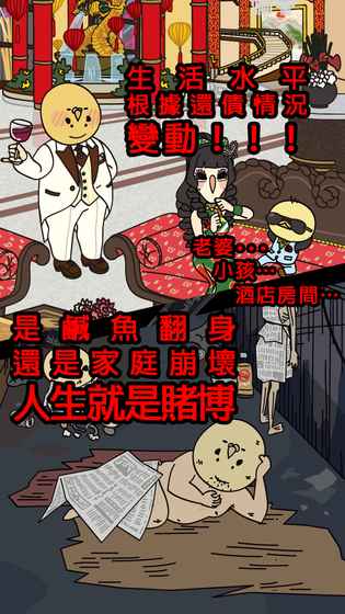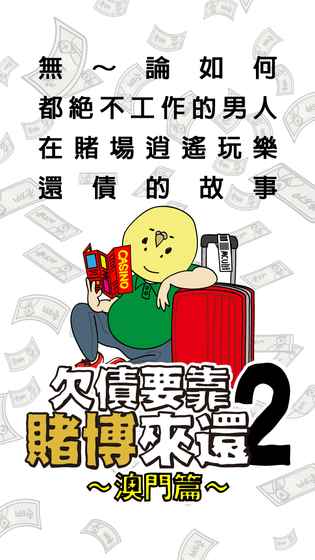 《欠债要靠赌博来还2 澳门篇》是一款休闲益智类的手机游戏。《欠债要靠赌博来还2 澳门篇》为《欠债要靠赌博来还》的续作,依旧是那个不想工作,只要赌博的男人。游戏中玩家要帮助这个男人进行赌博游戏,是变成人生赢家,还是倾家荡产,就看玩家的选择了!