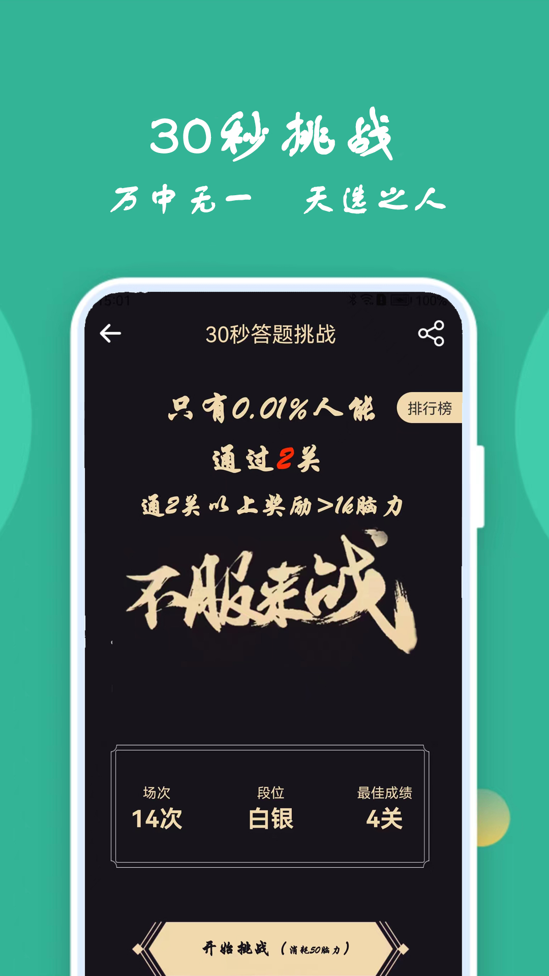 2. 通过多种答题挑战模式,如看图猜成语、听曲猜名等,丰富了用户的学习方式和乐趣。