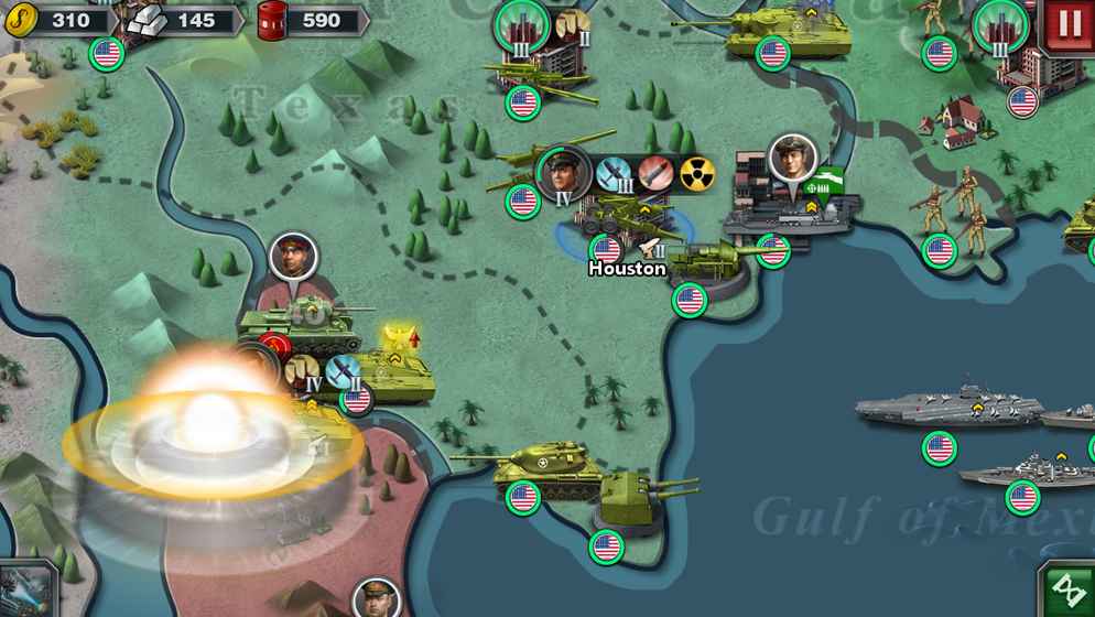 1. 多样化军事单位:游戏包含148种军事单位,从步兵、坦克到海军、空军,甚至导弹、核弹等,玩家可以自由组合。