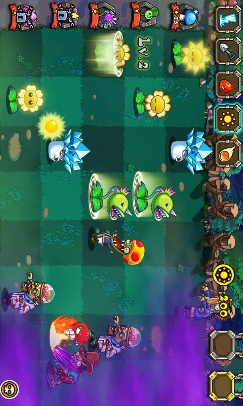 2. 资源收集:通过太阳民工等角色收集阳光等资源,用于购买和升级果蔬战士。