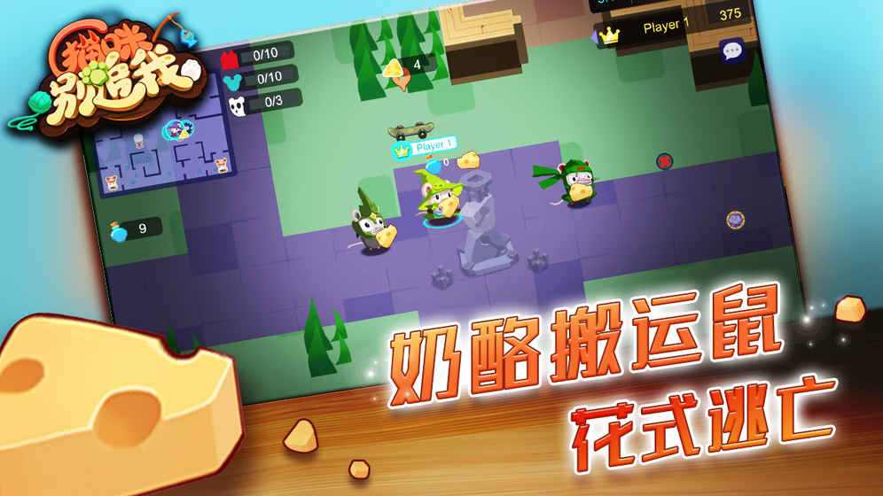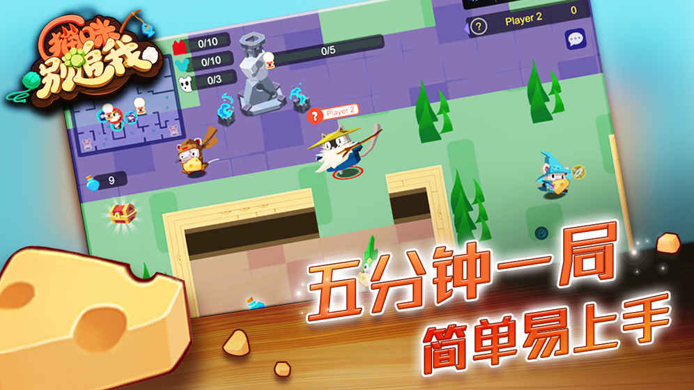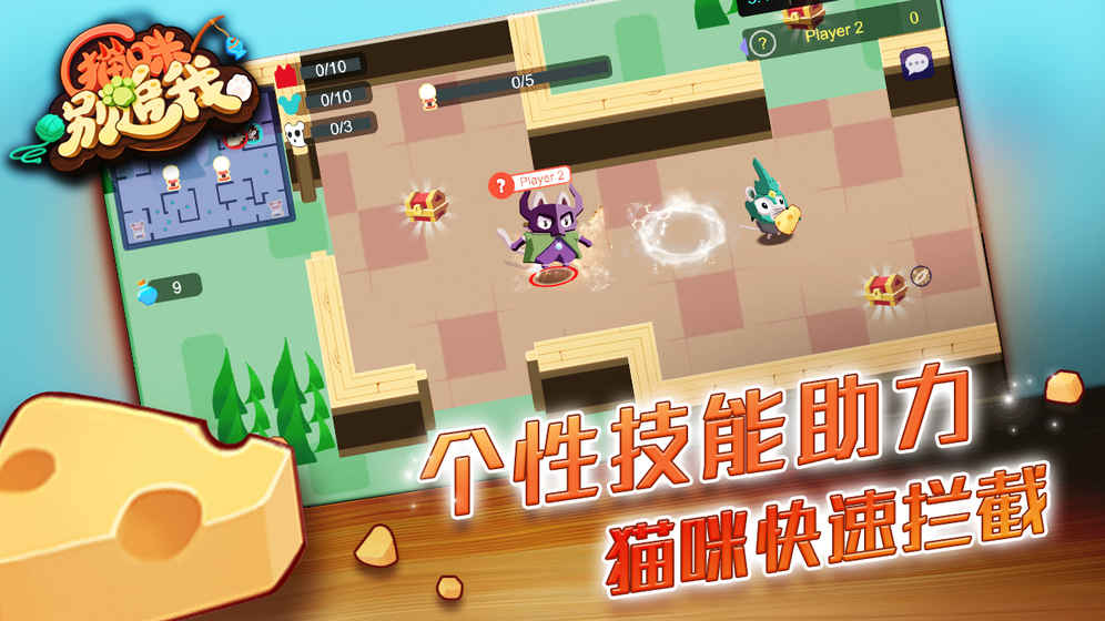 《奶酪大作战》是一款全新猫鼠大战题材的多人休闲对战手游,独特的追逐玩法,猫咪要去捉老鼠,千方百计,抓到为止,老鼠则要偷奶酪,还有各种搞怪技能,这往往能让你摆脱猫咪的追捕,非常的有趣,赶紧下载体验吧!