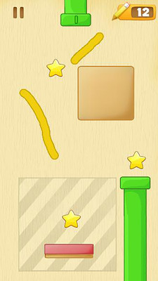 一款靠画笔涂画路径完成传球入洞的物理益智游戏。游戏目的和玩法都很简单,需要玩家在屏幕上滑动,画出挡板,让从上降落的小球一路收集金币,到达下方的水管里面。注意,挡板不是无限的,而有些区域是不能画挡板的,所以需要玩家仔细斟酌。