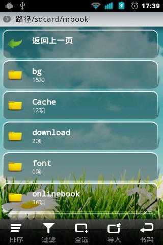 2. 提供本地书库管理,包括书架、列表展示模式,可按入库时间、阅读时间排序,也可按“分类”、“作者”分组浏览。
