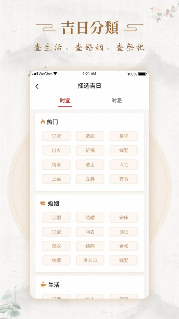 5. 黄历查询:提供每日宜忌、生肖运势、黄道吉日等黄历信息,满足用户的传统查询需求。