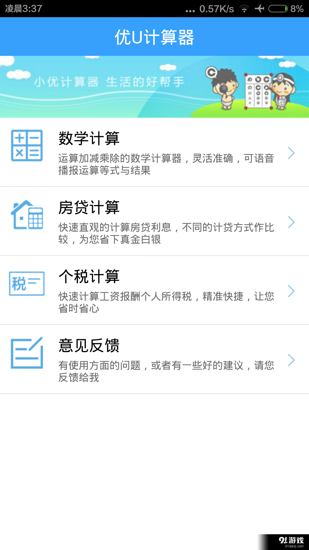 1. 适用场景:优u计算器适用于房产购买者、财务从业者、上班族等各类用户,满足他们在房贷计算、个税计算等方面的需求。