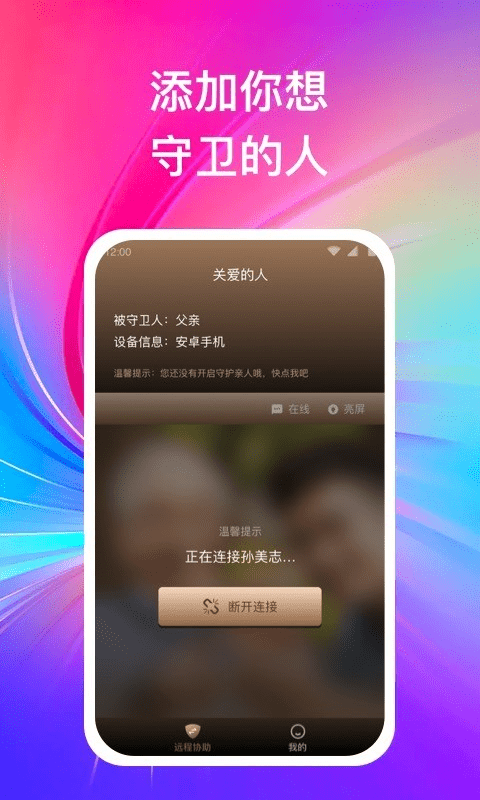 2. 远程协助:支持手机与微信一键登录,快速实现远程控制,协助家人解决手机使用难题。