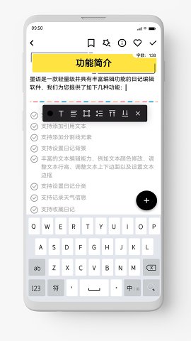 1. 丰富的编辑功能:墨语不仅支持基本的文字编辑,还能添加图片、待办事项、引用段落等多种元素,满足用户多样化的记录需求。