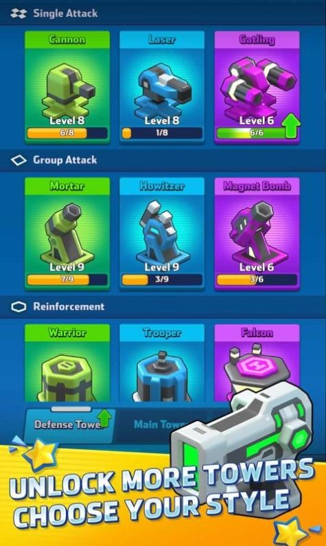 1. 合成与构建系统:玩家可以通过合成相同的炮塔并升级模块,使炮塔更加强大。