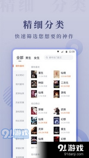 3. 小说分类:小说按照题材进行分类,方便用户快速找到感兴趣的内容。