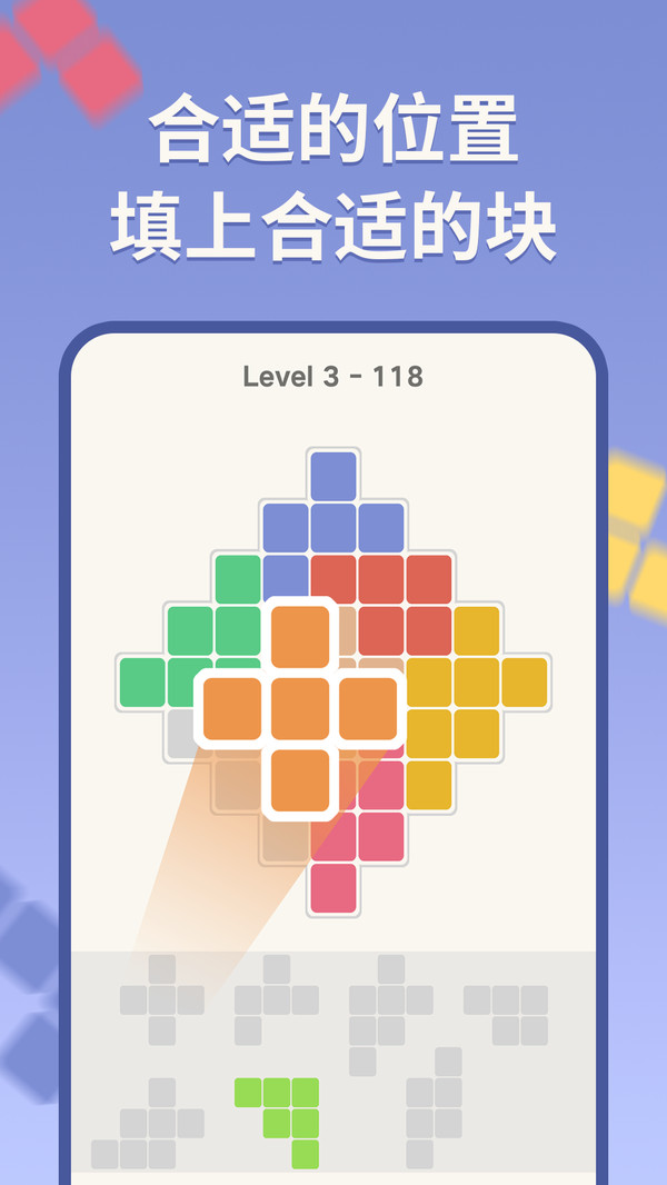 上块是一款极具挑战性和趣味性的益智类安卓手机游戏。在这款游戏中,玩家需要在合适的位置填上正确的色块,以完成各种关卡挑战。游戏画面简洁清新,设计精美,能够让人真正静下心来思考策略。随着关卡的深入,难度也会逐渐提升,需要玩家不断运用逻辑思维和策略规划来应对。